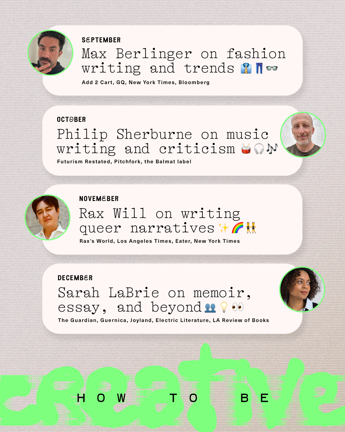 On September 24, Max Berlinger will be lending his expertise on fashion writing and identifying trends, both as a fan of fashion and as someone who writes about fashion trends for a living. Max and I originally chatted a year ago about the state of the industry and have become good friends over the time, sharing thoughts on the industry and general thoughts on the world. Max is someone whose expertise and insights on fashion I find to be critical and his Add 2 Cart newsletter is a wellspring of such thinking. For the unfamiliar, Max is known for his regular contribution on fashion and style for GQ, The New York Times, Bloomberg, and more: if youāve been wanting to write about fashion and trends along with pitching stories to publications on the subject, this oneās for you.