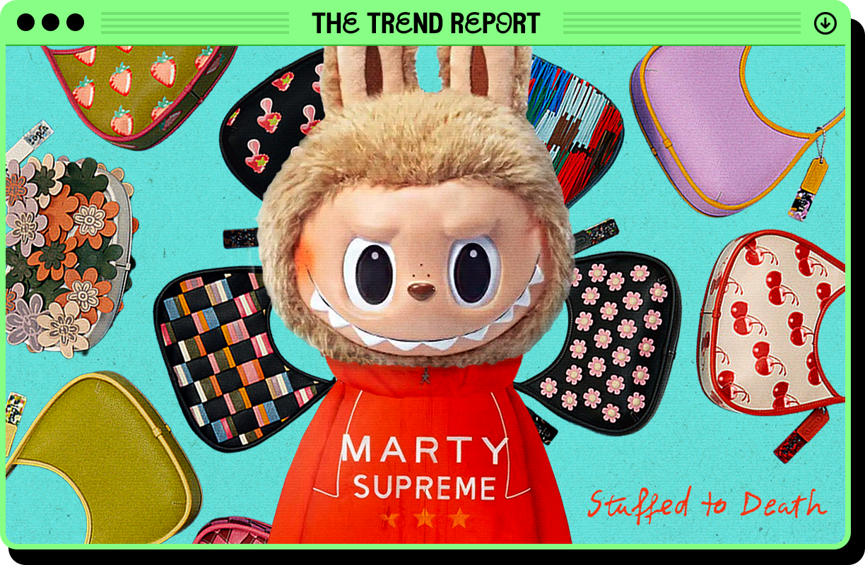 Obviously I’m fantasizing, exaggerating such a scenario even if many details will be real: there is a Skibidi movie in the works and North West wears a lot of tooth jewelry and the past ten years have been the hottest on record. I don’t need to draw your attention to specific details but I will: all that stuff. What stupidly materialistic times we’re in! None of this is to peacock wealth as the optics of the rich and the poor have collapsed but instead expresses how the trend cycle has moved beyond anything vibe-based or earned through living and culture (See the early 2025 “death of trends” conversation.) and into a shorthand of possibility: Gen Z and Gen A shifting the concept of “status symbols” from high-cost items like watches, tech, cars, and the like and into common things like a Bearista, Crocs, Rhode phone case, Trader Joe’s bags, etc. means everything life is now a pay-to-play accumulation of trend-based accessories, your life a constant creation of trash to signal culture instead of being involved in culture. This is less “their fault” and more the logical conclusion of our pressing easy buttons for the past decade, overnight shipping and binge watching defanging people to the point of their being too lazy and too illiterate to understand they’ve been conned into living an unremarkable, disposable life. “In a time when affordability is driving the political conversation…it isn’t a flex anymore to splurge on a designer bag,” Vox’s Kyndall Cunningham wrote recently. “Status can be earned by getting your hands on something rare, even if it only costs 30 bucks.” True, yes, but whether a $500 Coach bag or an $89 Pink Palm Puff hoodie or $250 Marty Supreme windbreakers or a $65 North Face quarter zip, these are less things worn and loved and used and more brandmaxxing by literal and adult middle schoolers name dropping their way to meaning. Ralph Lauren Christmas, anyone? Better yet: a Trump Gold Card? Cue TikTok Shop slopping UGC creators building identities not only upon consumption but by being human ads for products built to never last.
